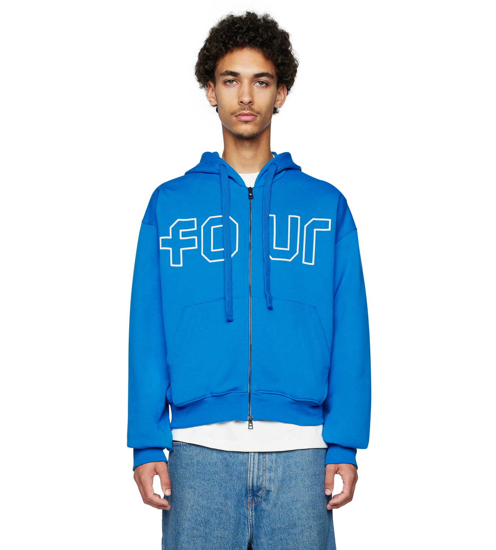FOUR Outline Boxy Zip‑Up Hoodie – Princess Blue / Cannoli